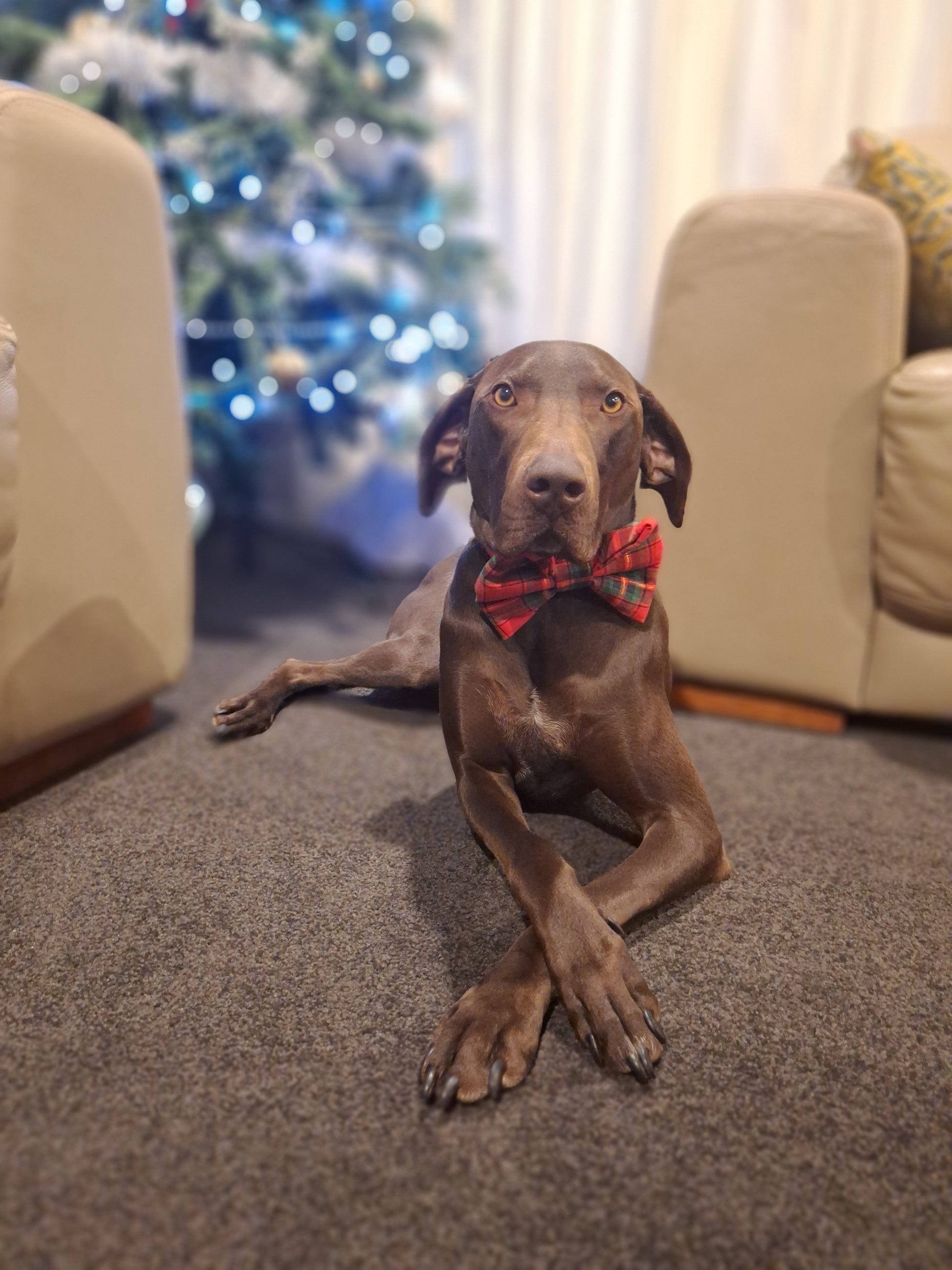 Our pup-ties have handy elastic loops at the back to attach to *almost* any sized collar!